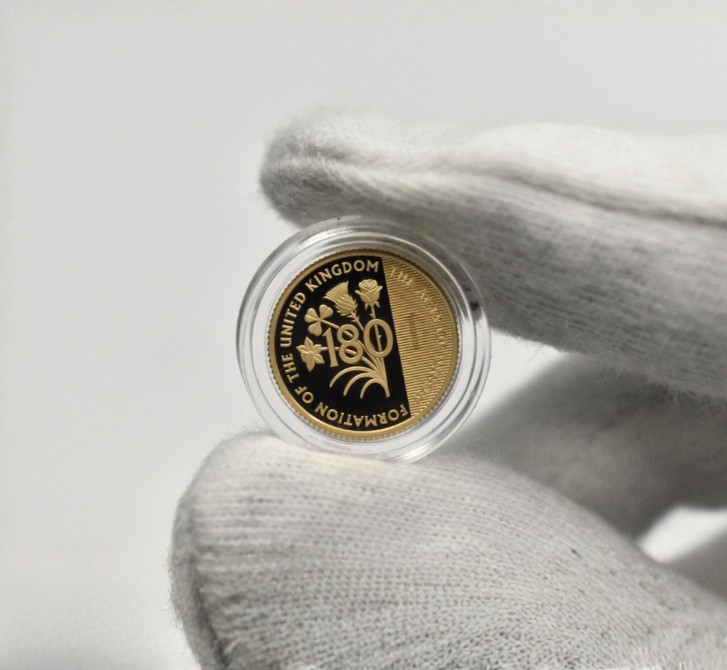 The world’s first one-eighth sovereign coin ever to feature a lenticular design that changes depending on how you angle it – an important first to celebrate the anniversary of our United Kingdom!
