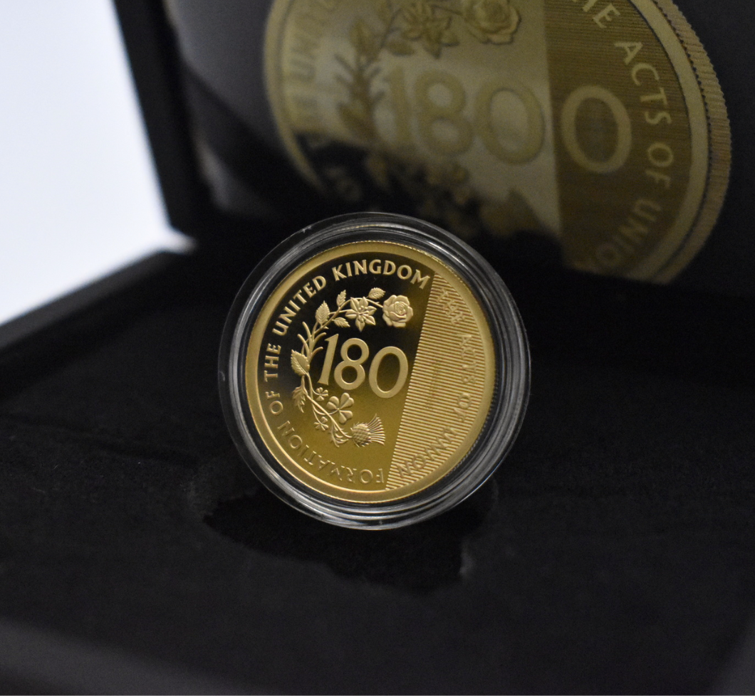 Now, to celebrate this pivotal moment in the formation of our nation, new gold sovereign coins have been released. This marks an exciting moment in coin design, as this new coins features a design element never seen before on sovereign coins! For the first time ever, the artwork contains a lenticular feature, the result of which is that the main date in the design changes – from 1800 to 1801 – as you tilt each coin, creating a dynamic hologram-like effect!